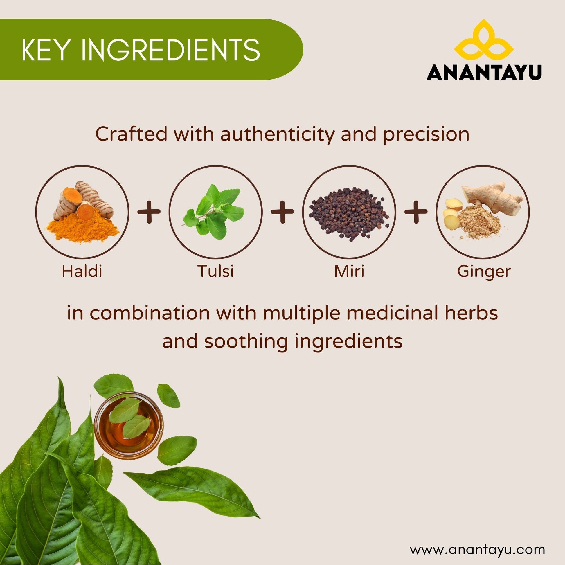 Adulsa Compound is skillfully prepared using authentic medicinal herbs, including Adulsa, Yashtimadhu, Tulasi, Shunthi, Marich, Haldi, Khadir, Kantakari, and more. Additionally, it contains ingredients such as camphor, Javkhar, and peppermint phool for their soothing properties.