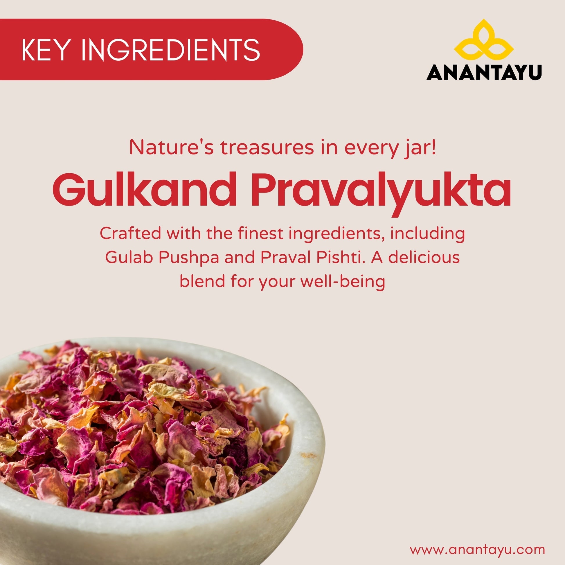 Gulkand is meticulously crafted by blending authentic rose petals with grounded processed sugar, known as khand.