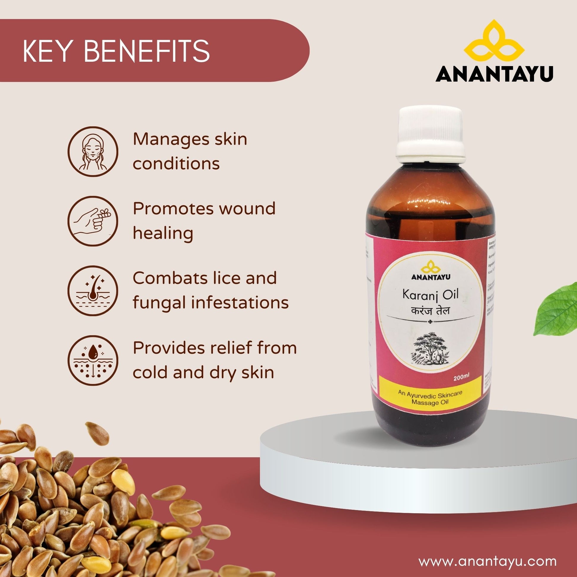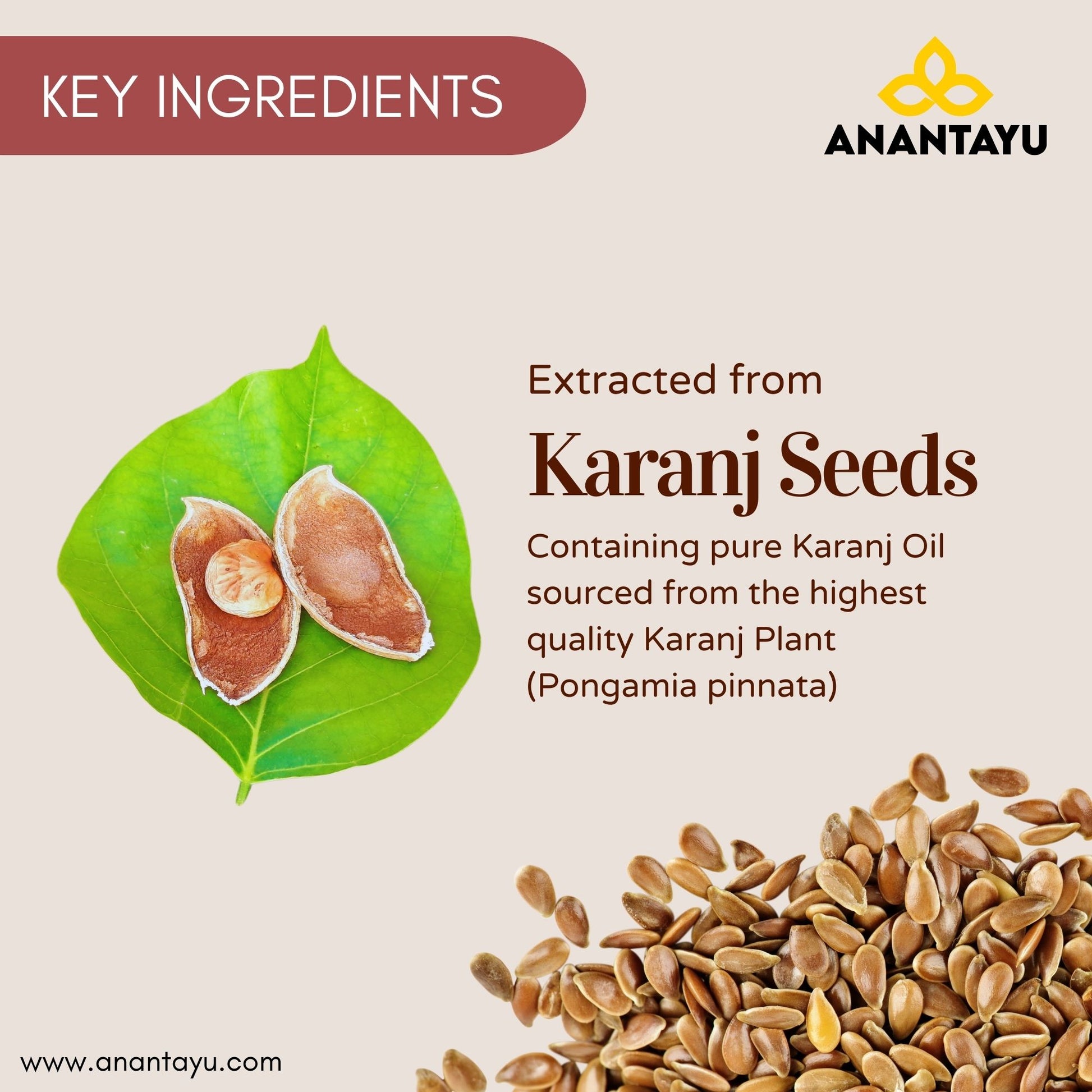 Discover the rejuvenating touch of Anantayu's Karanj Tail, an Ayurvedic skincare oil. Meticulously crafted from the finest natural ingredients, this oil embodies the essence of traditional Ayurvedic wisdom, offering a comprehensive approach to skin health.